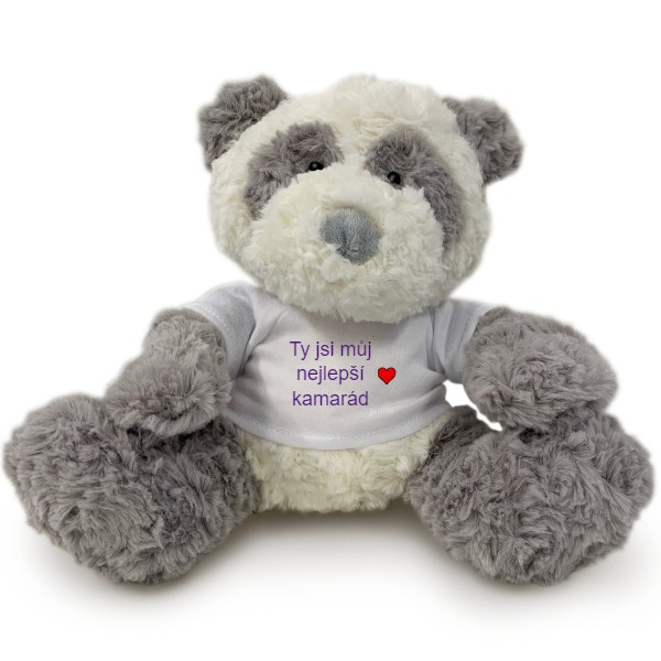 Plyšová panda v bílém tričku určeném pro sublimační potisk. Heboučký a měkký plyš. Je možné zakoupit i bez potisku. Výška hračky vsedě je 23 cm. Vhodná jako vtipný nebo romantický dárek k Valentýnu, narozeninám či k Vánocům, pro partnera, nebo děti.